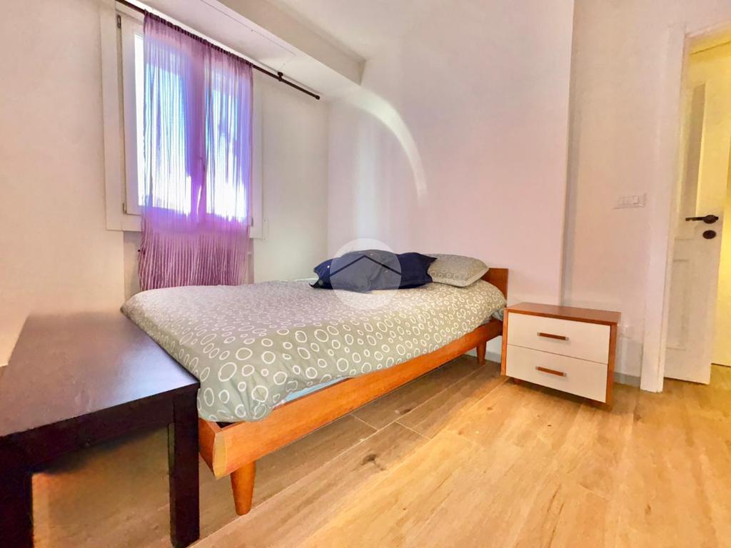 L’abitazione dispone inoltre di una cucina separata, un comodo bagno finestrato, dotato di box doccia, e due ampie camere da letto matrimoniali.