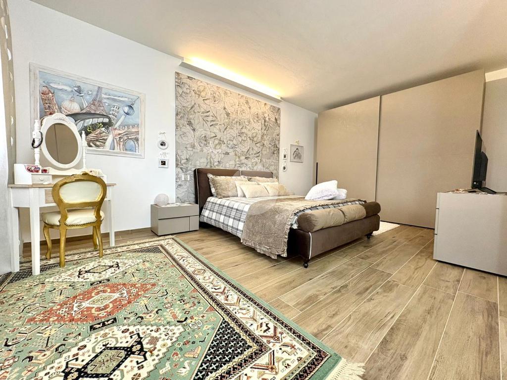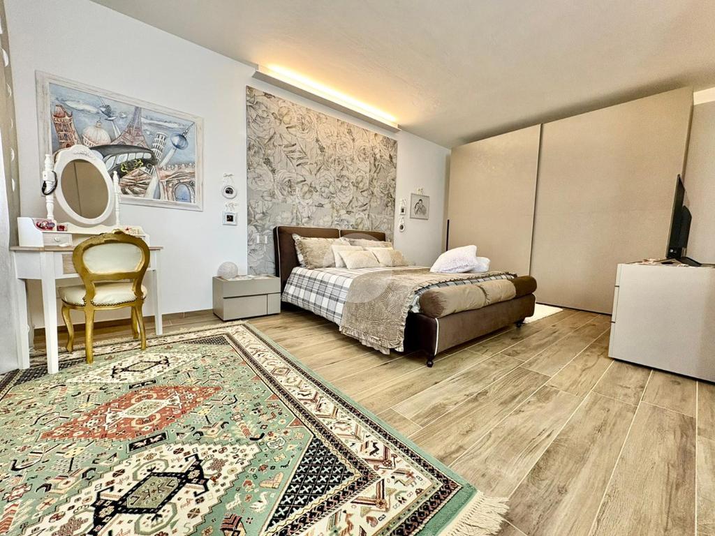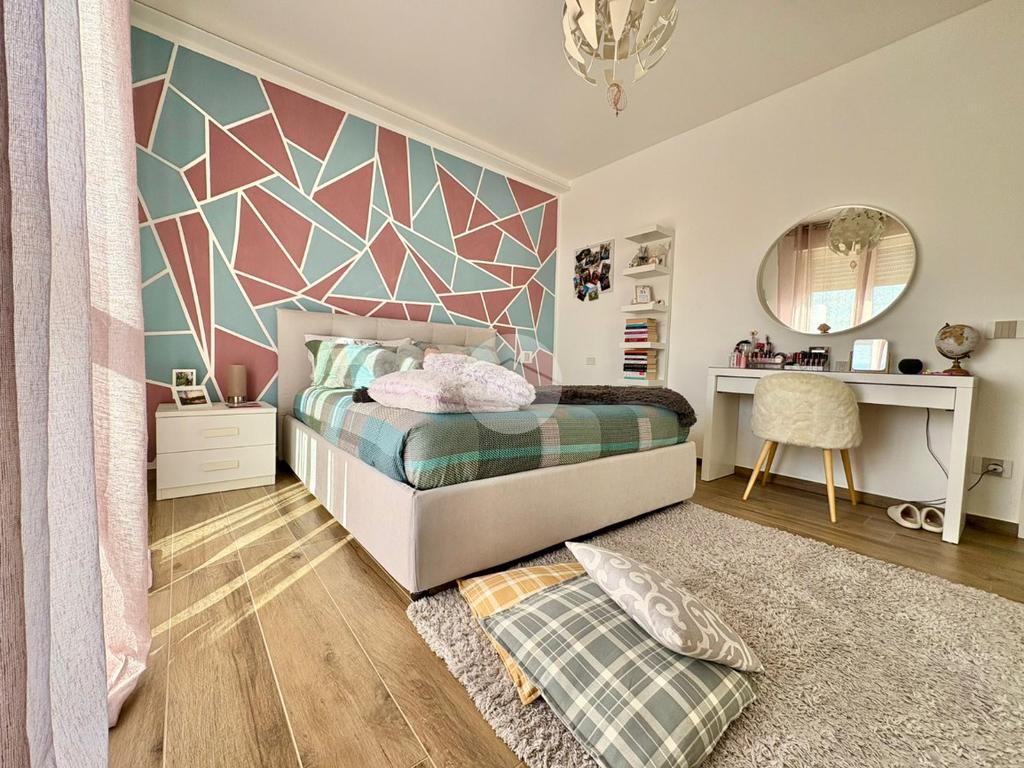 Da una scala, accediamo al piano superiore, dove sono presenti tre camere da letto, due matrimoniali con balcone e una doppia, oltre al secondo bagno.